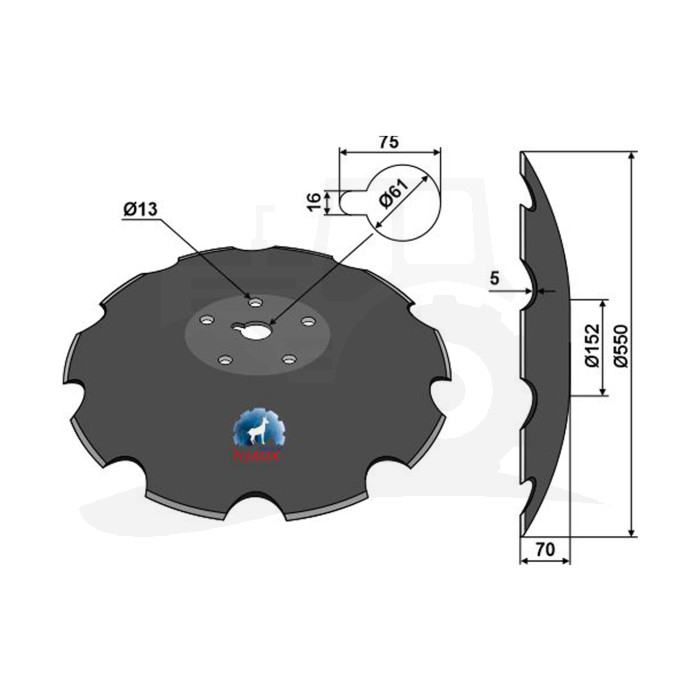 TALERZ ZĘBATY 550X5, Z10, 5-OTW. IND