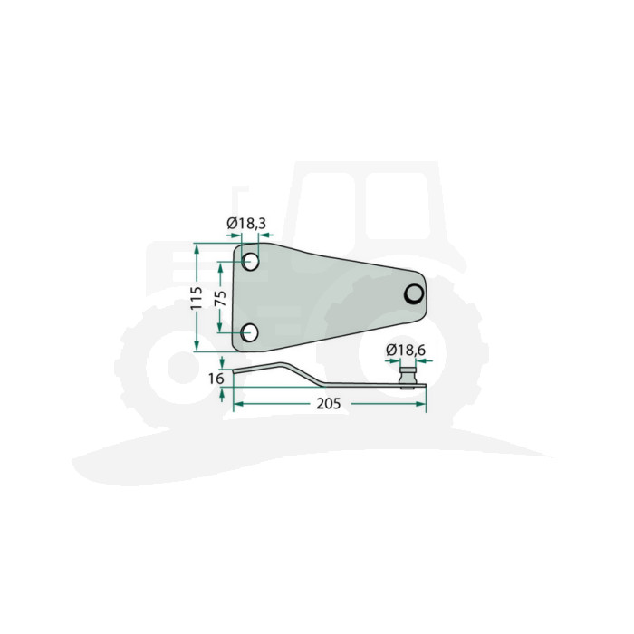Opis / Trzymak noża SIP, Dł-205, Sze-115, Otw.-18, Odległość otorów 75